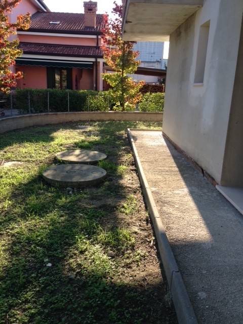 IN CONTESTO DI SOLE 3 UNITA' APPARTAMENTO AL PIANO PRIMO CON INGRESSO INDIPENDENTE E GIARDINO PRIVATO di nuova costruzione allo stato grezzo composto da ingresso - soggiorno - cucina abitabile - una letto martim. - una letto doppia - ripost. - bagno, scoperto esclusivo, doppio posto auto. Riscaldamento autonomo. Vicino al centro servito da pista ciclabile. Possibilità di personalizzare gli impianti e le finiture interne pavimenti, porte ecc.